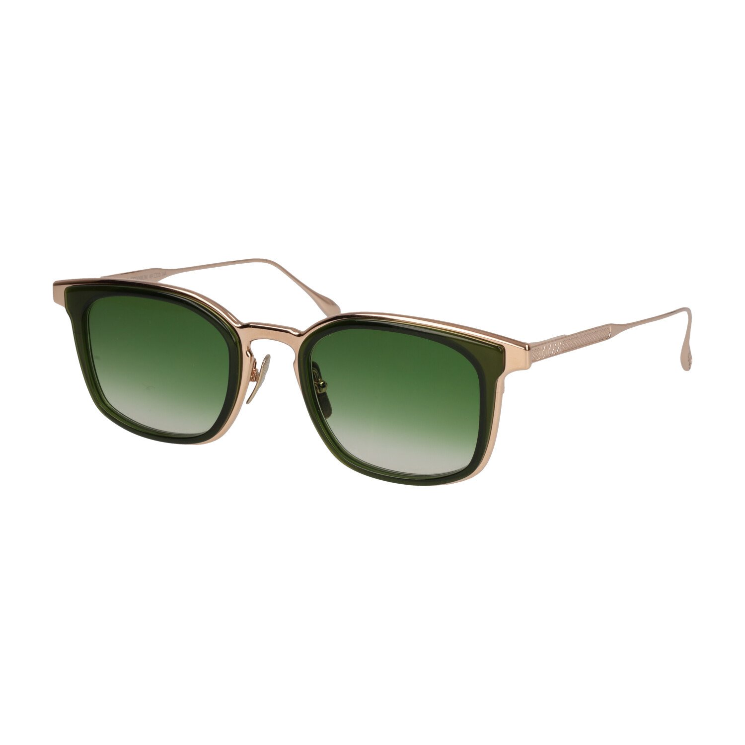 Dit is MMXX model Aurelius met een roze goud montuur, groene inleg en groene gradiënt gekleurde lenzen.