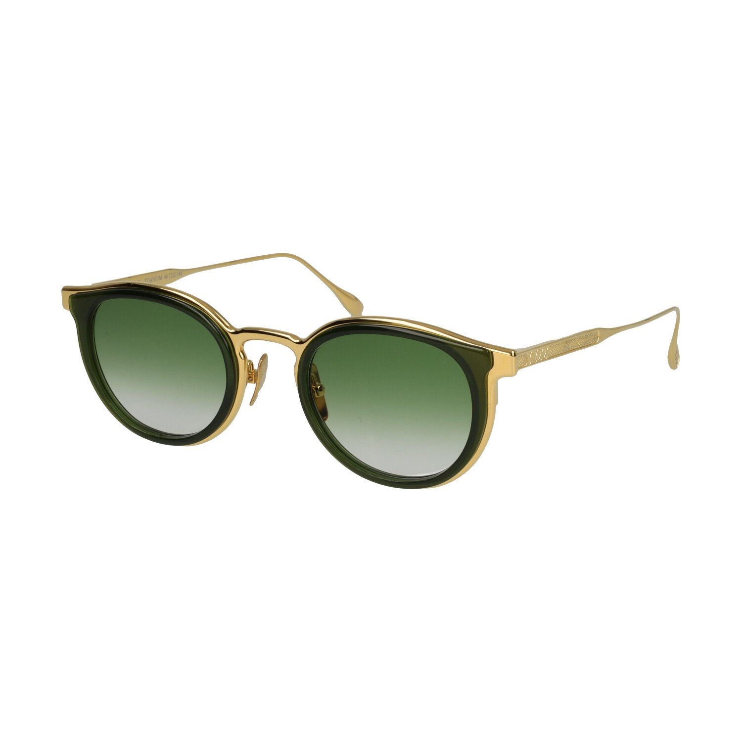 Dit is MMXX-model Livia met een geelgouden frame en een groene inleg met gradiëntkleurige lenzen.